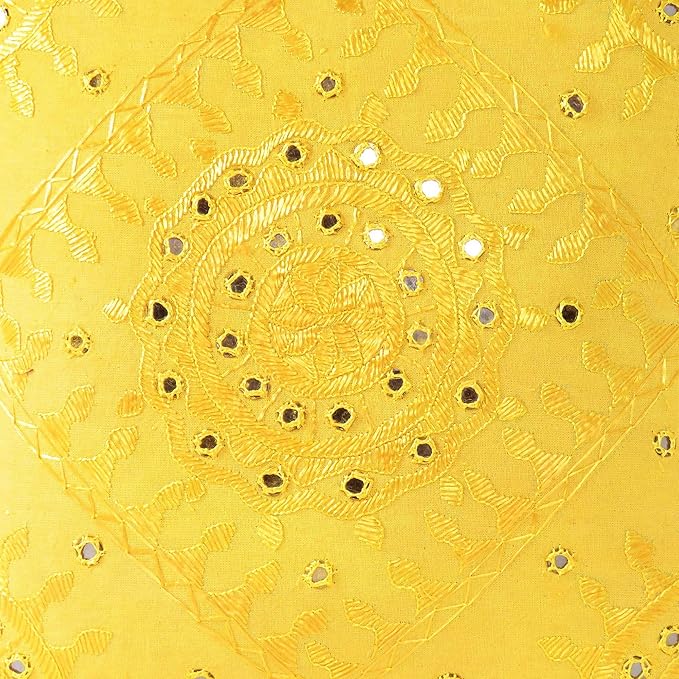 Eyes of India Embroidered Decorative Boho Throw Pillow Cover with Mirrors, Handmade Bohemian Accent Cushion Case for Sofa Couch Bedroom Living Room (Yellow, 24" x 24")