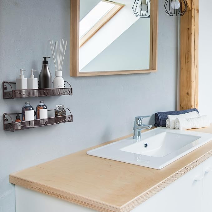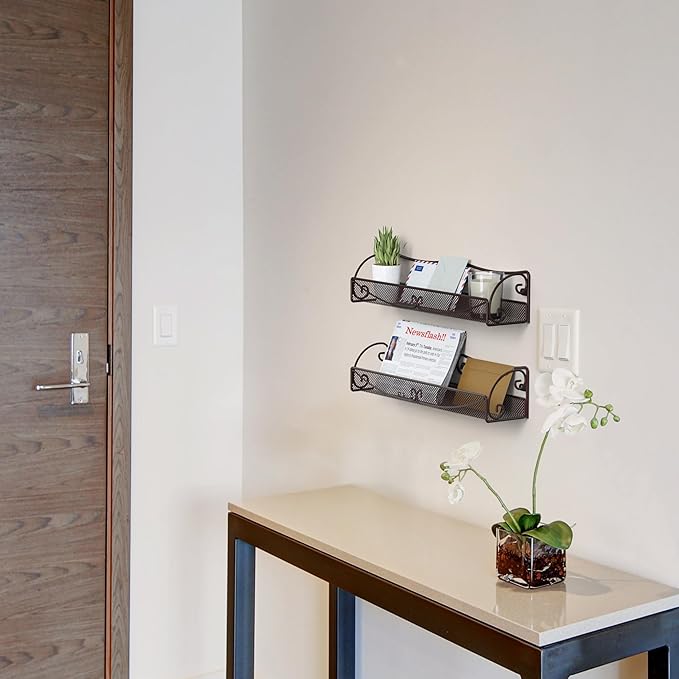 Deco Brothers Wall Mounted Single Tier Mesh Hanging Spice Rack, Set of 2, Bronze