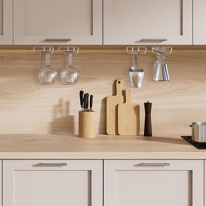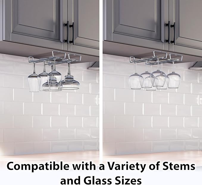 DecoBros 2PK Single Rail Wine Glass Stemware Rack Holder, Chrome
