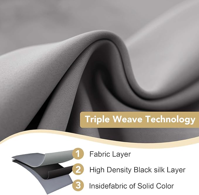 - MULTIPLE FUNCTIONS: These soft and durable curtains are made by innovative technology durable yarn, high performance on room darkening, thermal insulated, noise reducing, energy saving / efficiency and privacy protection