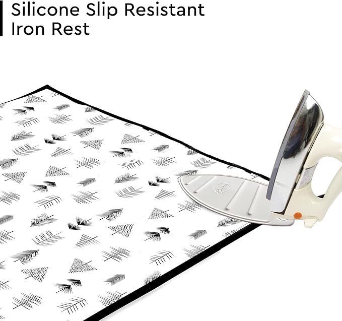 - QUALITY: Pure Cotton Printed fabric laminated with fibre pad for soft and quick ironing. Silicon Mat attached in one corner for keeping the hot iron. Printed fabric is scorch resistant and does not discolour easily . Fibre pad protects Table or Bed from burning as well as allows steam to go through and also holds heat for quick ironing.