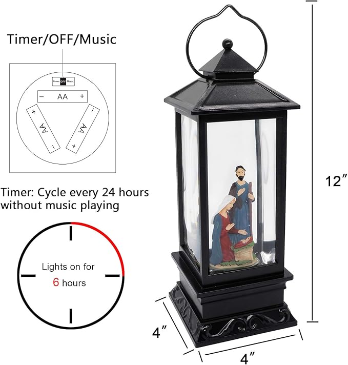 Eldnacele Musical Snow Globe Lantern Lighted Lamp USB Lined in Swirling Glitter Water Lantern Lamp Christmas Nativity Decoration Hurrican Light Timer 12" (Nativity)