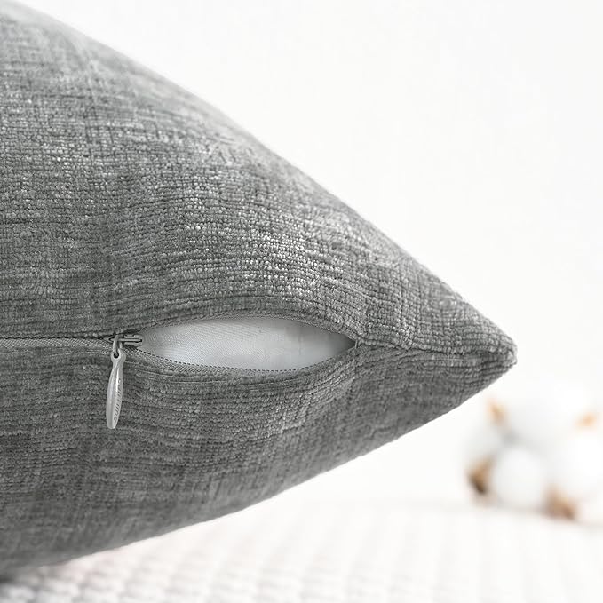 CaliTime Throw Pillow Covers Decorative 20 X 20 Inches Pack of 2 Cozy Chenille Cushion Cases for Couch Sofa Bed Living Room Home Medium Grey