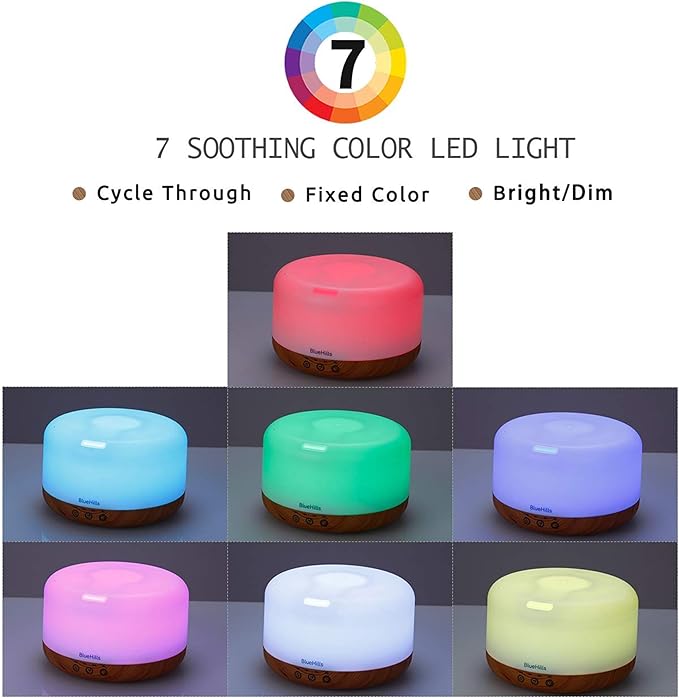 - Multifunctional aromatherapy device with remote: This essential oil diffuser is an amazing aromatherapy device unlike any other you've ever used. It features a huge and easy to clean 1000 ML water tank, 7 different LED light colors, multiple mist modes, as well as a safety auto-switch that prevents it from overheating in case it runs out of water.
