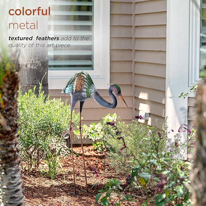 - CRANE STATUE: Colorful rustic crane looks great in your yard or garden, or placed on your deck or porch