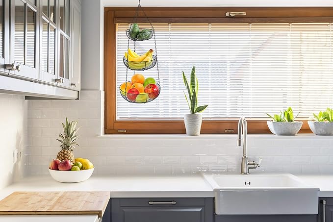 - Kitchen Organization: Display and organizer fruits in our heavy duty wire hanging fruit baskets to clearly see each fruit