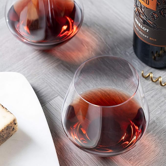 Godinger Wine Glasses, Stemless Wine Glasses, Red Wine Glasses, Wine Drinking Glasses, Stemless Wine Glass - 17oz, Set of 4 - Made in Europe