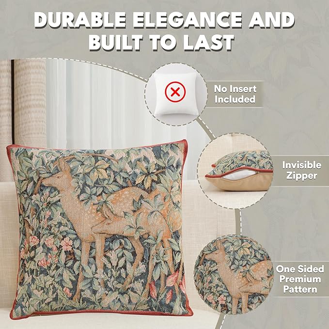 - Timeless Durability: Elevate your decor with our skin-friendly William Morris pillow covers 14”X14”, where quality and style come together. A sturdy hidden zipper ensures easy pillow insertion/removal, while the overlock stitches prevent seam ripping. Unlike thin printed cushion covers prone to tearing, our decorative pillows for couch with a super-soft backside are crafted with thick premium threads for long-lasting quality. THE PACKAGE INCLUDES A SINGLE TAPESTRY PILLOW COVER WITHOUT AN INSERT