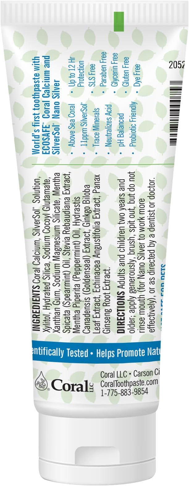 - CORAL CALCIUM TOOTHPASTE: Sea Safe Coral Calcium: Scientifically proven to neutralize acid restoring pH balance in the mouth. Coral Nano Silver Toothpaste contains the purest form of Coral Calcium with 73 essential trace minerals.