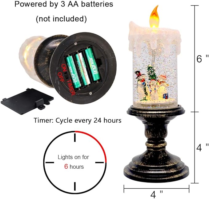 - ★6 HOURS TIMER: Once slide to timer mode, the snow globe candle will light on for 6 hours and off for 18 hours, automatically back to light at the same next day, cycle every 24 hours. Unique snow globe candle features beautifully hand sculpted and hand-painted Snowman family inside a clear candle.