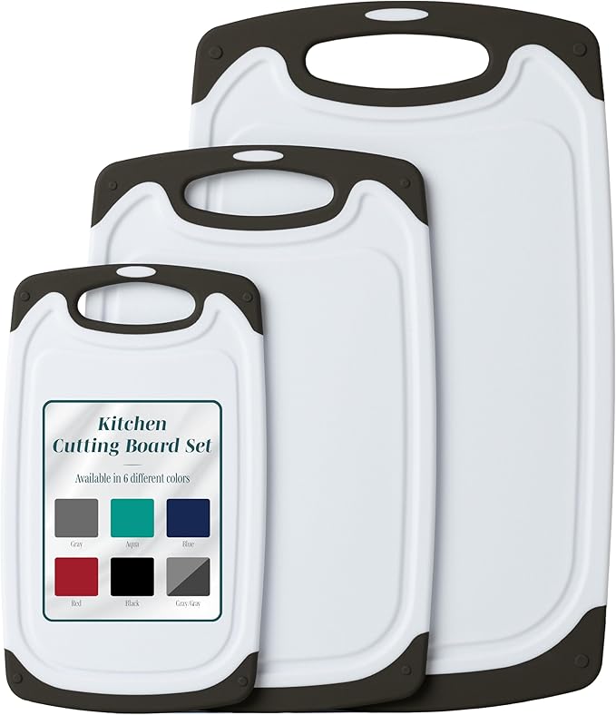 Cutting Boards for Kitchen - BPA-Free Chopping Board - Different Sizes & Non Slip Handles - Reversible, Large Cutting Board Set - Unique Gifts for Cooks Who Have Everything - 3-Pack Black