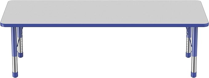 FDP Rectangle Activity School and Classroom Kids Table (30 x 72 inch), Chunky Toddler Leg, Adjustable Height 15-24 inches - Gray Top and Blue Edge