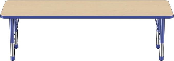 Factory Direct Partners FDP Rectangle Activity School and Classroom Kids Table (24 x 72 inch), Chunky Toddler Legs, Adjustable Table Height 15-24 inches - Maple Top and Blue Edge