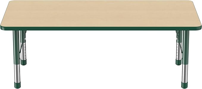 Factory Direct Partners FDP Rectangle Activity School and Classroom Kids Table (30 x 60 inch), Toddler Legs, Adjustable Height 15-24 inches - Maple Top and Green Edge