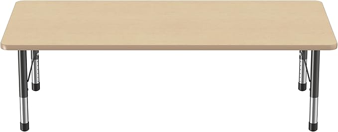 FDP Rectangle Activity School and Classroom Kids Table (36 x 72 inch), Toddler Legs, Adjustable Height 15-24 inches - Maple Top and Maple Edge