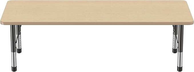 Factory Direct Partners FDP Rectangle Activity School and Classroom Kids Table (30 x 72 inch), Chunky Toddler Leg, Adjustable Height 15-24 inches - Maple Top and Maple Edge