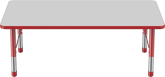 Factory Direct Partners FDP Rectangle Activity School and Classroom Kids Table (36 x 60 inch), Toddler Leg, Adjustable Height 15-24 inches - Gray Top and Red Edge