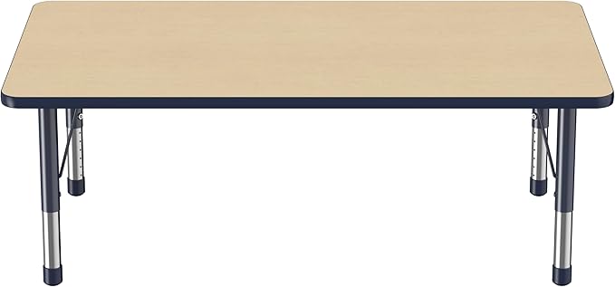 Factory Direct Partners FDP Rectangle Activity School and Classroom Kids Table (36 x 60 inch), Toddler Leg, Adjustable Height 15-24 inches - Maple Top and Navy Edge