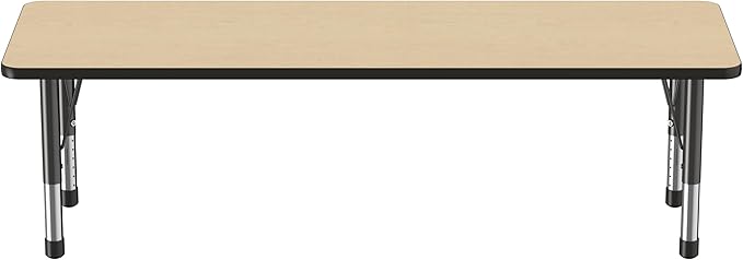 FDP Rectangle Activity School and Classroom Kids Table (24 x 72 inch), Chunky Toddler Legs, Adjustable Table Height 15-24 inches - Maple Top and Black Edge