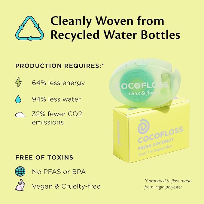 - PLANET-FRIENDLY AND CRUELTY-FREE: Cleanly spun from ~85% recycled water bottles; refillable dispenser; less waste than plastic picks and flossers; free of parabens and sulfates; no irritating flavors; Leaping Bunny–certified cruelty-free.