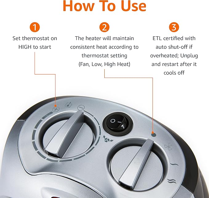 - CUSTOMIZABLE HEATING OPTIONS: Choose from three settings to suit your needs - High (1500W), Low (900W), or Fan Only for air circulation without heat.