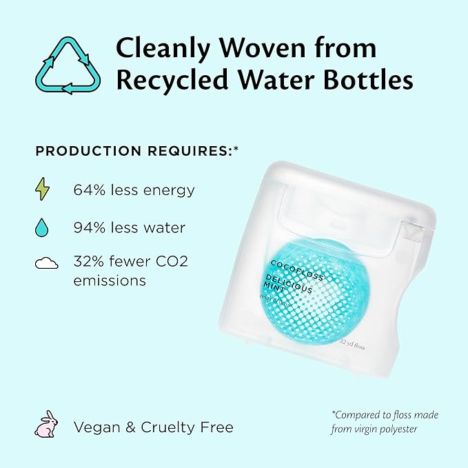 - PLANET-FRIENDLY AND CRUELTY-FREE: Woven from ~85% recycled water bottles; refillable dispenser; less waste than plastic picks and flossers; free of parabens and sulfates; no irritating flavors; Leaping Bunny–certified cruelty-free.