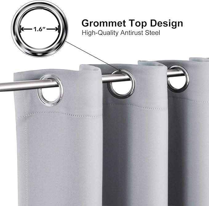 - SET DETAILS: 2 panels per package. Each panel measures 52 inch wide by 63 inch long with 8 silver metal grommets (1.6 inch inner diameter) on top, easy to install and slide.