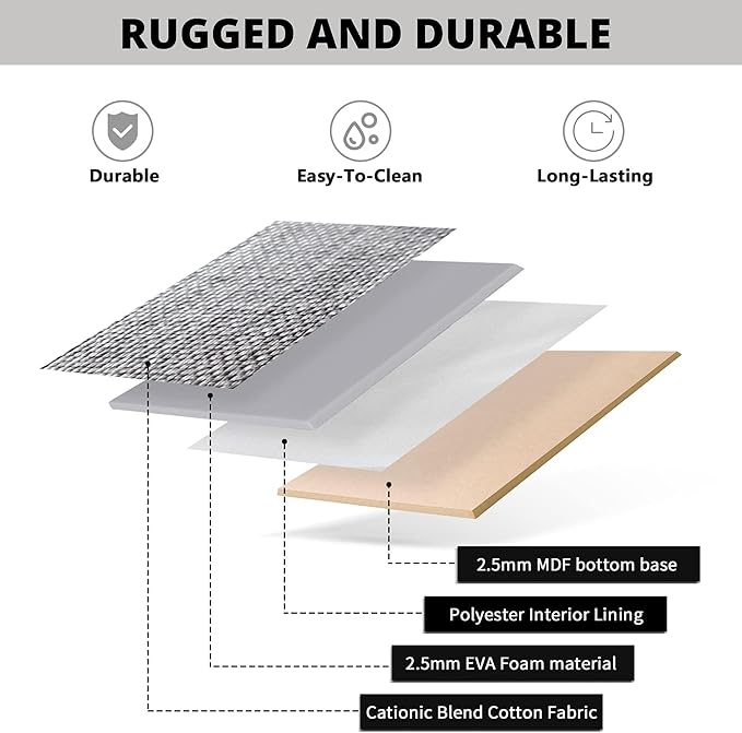 - Material : Fabric, Faux Leather, Ethylene Vinyl Acetate