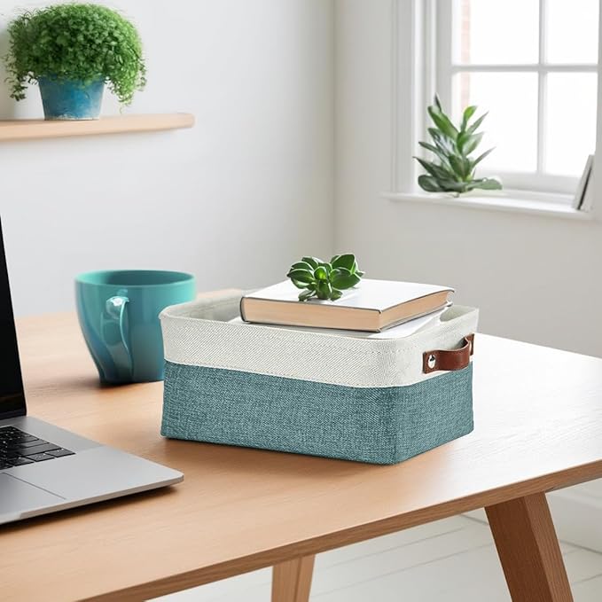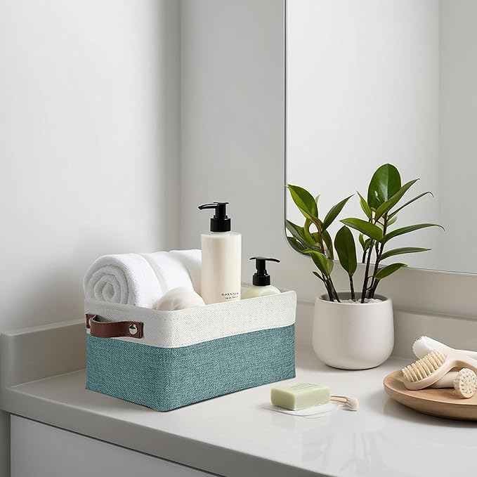 DECOMOMO Small Storage Basket, Closet Storage Bins, Baskets for Organizing Shelves (Teal & White, Small - 6 Pack)