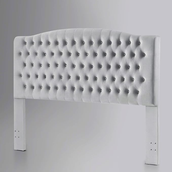 24KF Upholstered Tufted Button Velvet Headboard,Comfortable Fashional Headboard King/CA King Size,Gray