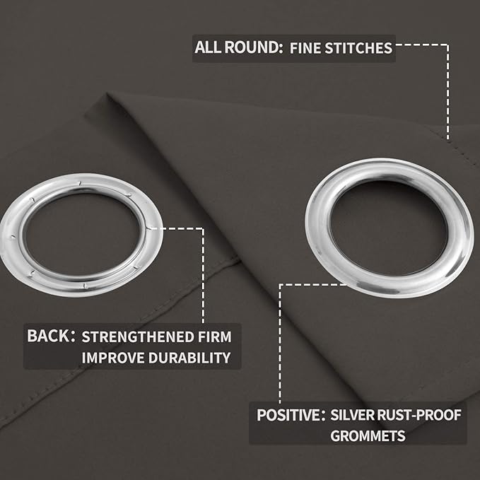 - Easy to Install: Each curtain panel has 8 silver metal grommets on top.Each grommet inner diameter is 1.6 inch, fits easily with standard curtain rods.Easy to hang, and slide smoothly. Perfect for office, bedroom, living room.