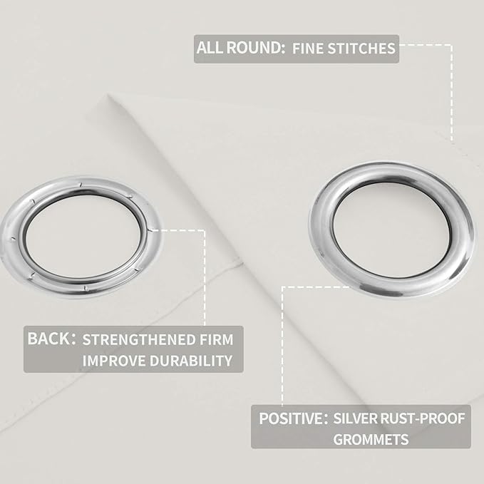 - Easy to Install: Each curtain panel has 8 silver metal grommets on top. Each grommet inner diameter is 1.6 inch, fits easily with standard curtain rods. Easy to hang, and slide smoothly. Perfect for office, bedroom, living room.