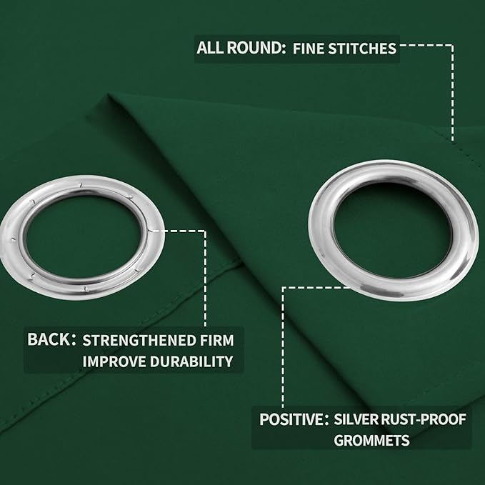 Easy-Going Blackout Curtains for Bedroom, Solid Thermal Insulated Grommet and Noise Reduction Window Drapes, Room Darkening Curtains for Living Room, 2 Panels (52x63 in,Dark Green)