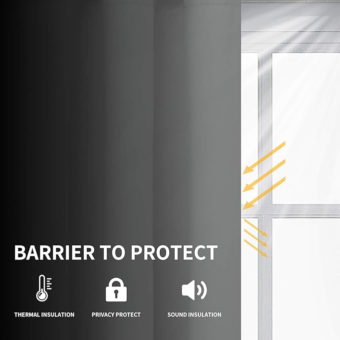 - Multiple Functions: Our curtains can block out sunlight and UV ray ( Darker colors work better), insulate against summer heat and winter chill to balance your room temperature, cut down energy bills. Reduce outside noise,Privacy protection,Create a good working and sleeping environment for you.