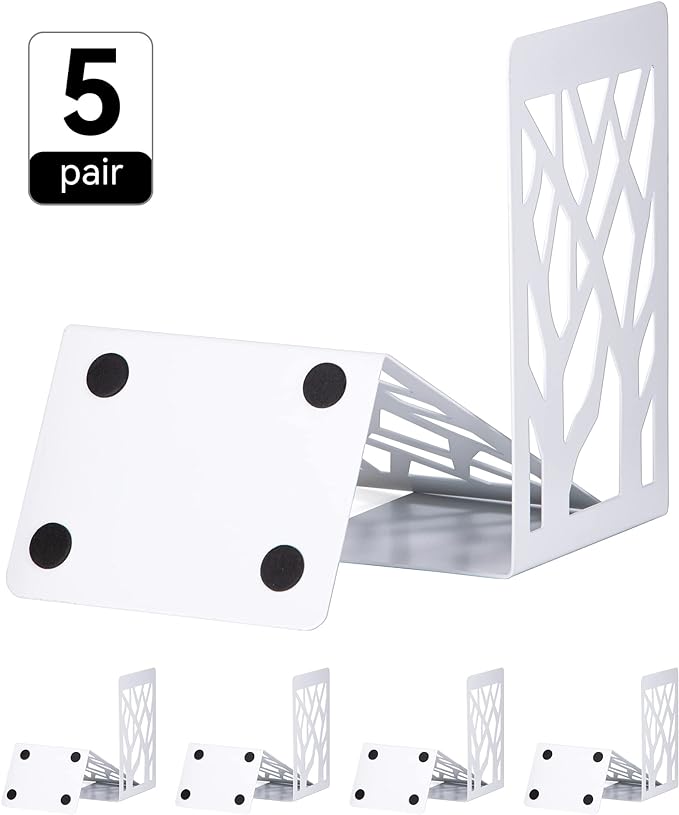Book Ends, Bookends, Bookends for Shelves, Bookend, Book Ends for Heavy Books, White Metal Book Shelf Holder Home Decorative, Book Stoppers for Shelves, Bookend Supports 5 Pair