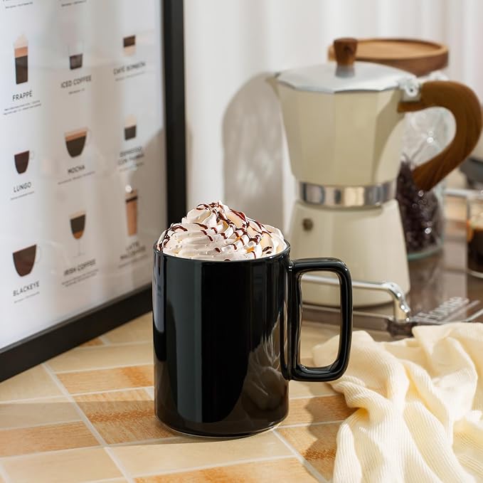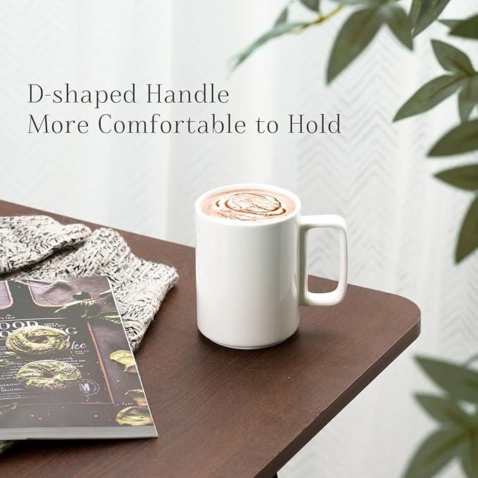 E-liu Porcelain Tea Mugs Coffee Mug Set, Large 15 Ounces Cups for Coffee, Tea, Cocoa, and Mulled Drinks, Set of 6, Grey
