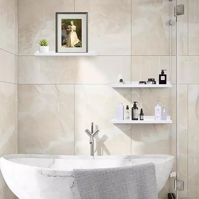 - Minimalist Modern Design:Chic white Wall shelves is made of natural wood, Healthy and tasteless,You can also hang them separately to display books, pictures frames,plants,tidy up jars,bottles, bathing articles,or other items in the bathroom,bedroom, kitchen, living room.
