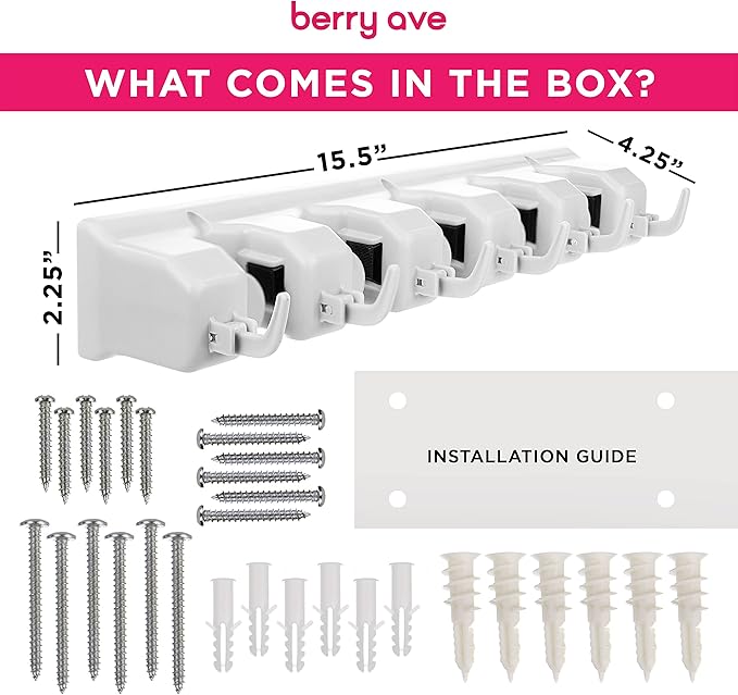 - NO SLIDE, NO MESS β Each commercial grade broom hanger has a 35 pound holding capacity. Thanks to the spring loaded, double rubber gripped slots, the Berry Ave utility hooks can hold anything from wet mops and dirty rakes to baseball bats, without any annoying slipping.