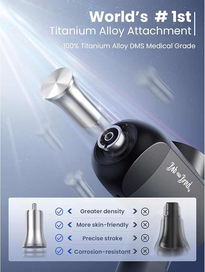 - 【Innovative All-Titanium Alloy Metal Massage Head】The exclusive metal massage head of our percussion massage gun is perfect for athletes and fitness enthusiasts needs, via strengthen and deepen the percussion impact, help users recovers in mins instead of days. (Tips: A towel can be covered by the metal head when using.)