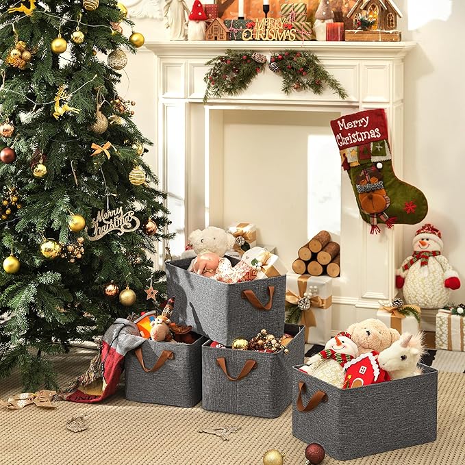 GRANNY SAYS Closet Storage Baskets, Collapsible Fabric Storage Bins with Metal Frame, Clothes Organizer Bins, Large Baskets for Shelves, Dark Gray, 4-Pack