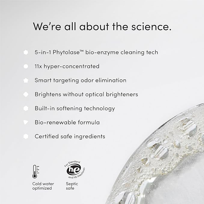 - Scent-Free: This laundry detergent is free of fragrances and dyes for sensitive skin.
