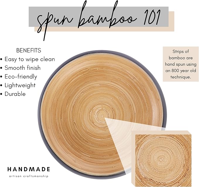 - Habitas Spun Bamboo is made by hand in Vietnam using an 800 year old technique to work the bamboo into form. Our large serving bowl features a sleek lacquered interior and a delightfully smooth painted exterior - choose your color: white, black, gray, sage, or blue..