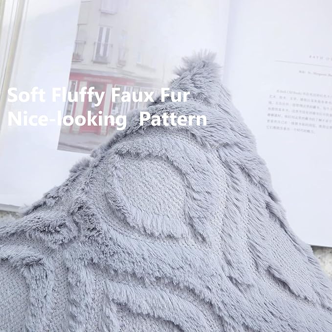 decorUhome Fall Throw Pillow Covers 16x16 Inch Set of 2, Soft Plush Decorative Faux Fur Blue Grey Solid Couch Pillow Covers, Accent Farmhouse Neutral Square Euro Pillow Cases for Sofa Bed Living Room