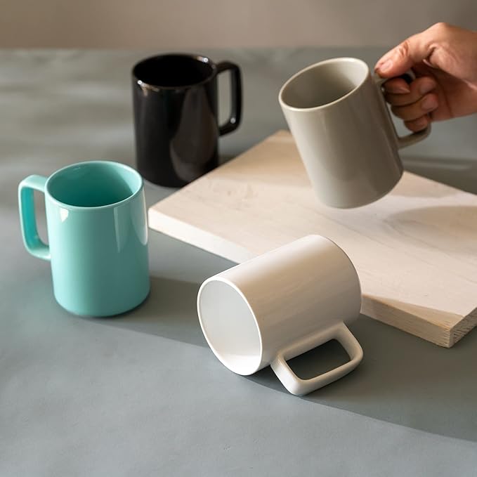 - SIMPLE, COMFORTABLE DESIGN: The clean-lined design in grey porcelain is ideal for everyday enjoyment of your favorite hot pick-me-up. 15 Ounces capacity is perfect for tea, coffee, or hot chocolate