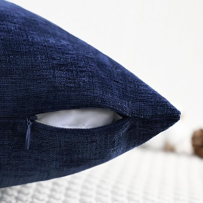 CaliTime Throw Pillow Covers Decorative 24 X 24 Inches Pack of 2 Cozy Chenille Cushion Cases for Couch Sofa Bed Living Room Home Navy Blue