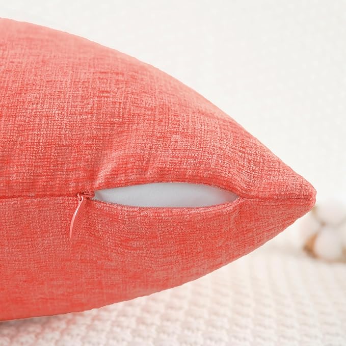CaliTime Throw Pillow Covers Decorative 26 X 26 Inches Pack of 2 Cozy Chenille Cushion Cases for Couch Sofa Bed Living Room Home Living Coral