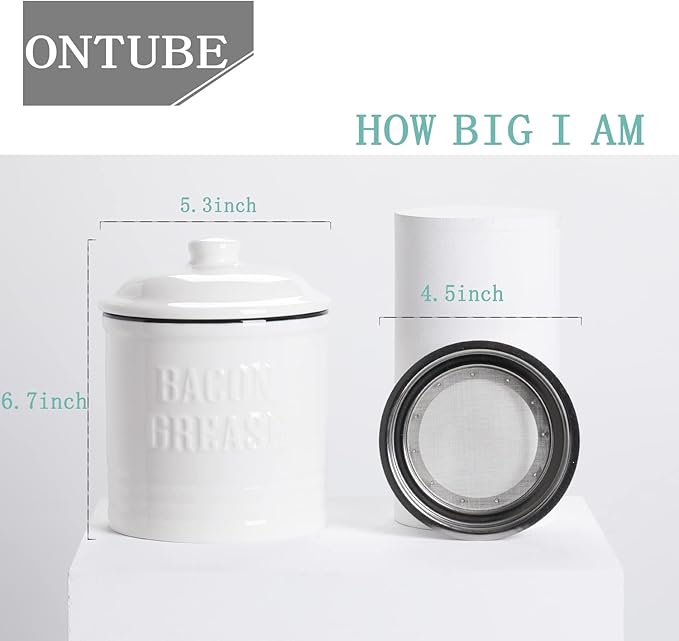 - CERAMIC MATERIAL : This Grease Container with Lid is made of ceramic.The surface is smooth and translucent, which is easy to clean.It can be washed in the dishwasher