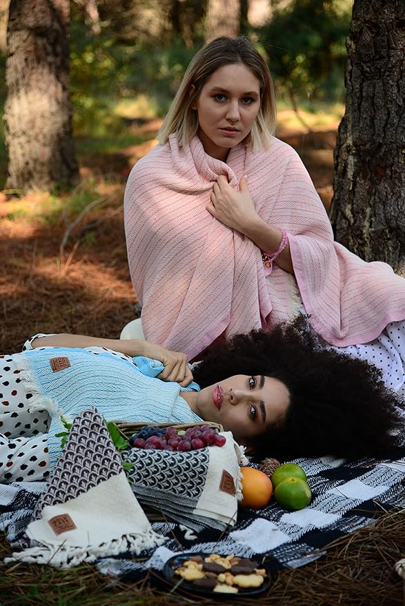 - LIGHTWEIGHT LAYERS FOR RELAXED MOMENTS: Woven from 100% recycled Turkish cotton, this breathable and cute throw blanket adds a soft, textured touch to your space; made for layering on the couch, tossing over your shoulders, or adding a laid-back look to your decor