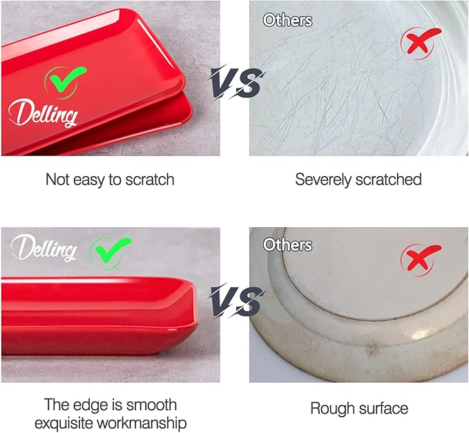 - Perfect for All Occasions: Red rectangle plates perfect for like Christmas, birthday, romantic date, family gathering, restaurant and any other activities decoration. With a warm red brings more vibrancy to your dining table