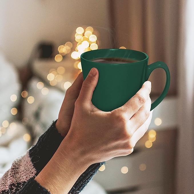 - ā DURABLE & COMFORTABLE DESIGN ā 12-ounce Vibrant Ceramic Latte Coffee Mugs made of strong molded ceramic in the classic latte style. Each ceramic coffee mug fits in your hand perfectly so you can enjoy your favorite hot or cold beverage. The high curved grip makes for easier drinking and fewer spills.